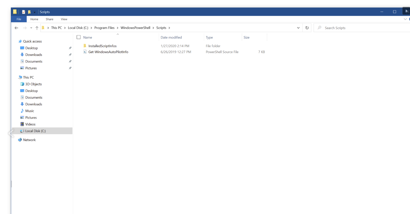 Step 2: Next, navigate to C:\Program Files\WindowsPowerShell\Scripts and copy the Get-WindowsAutoPilotInfo.ps1 file to your USB drive
