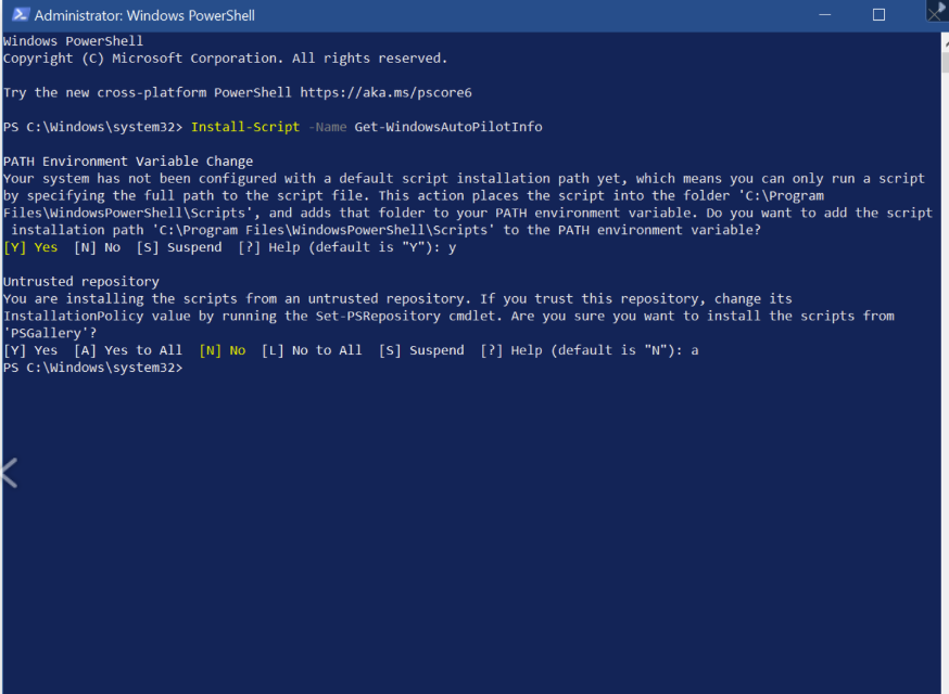 Step 3: Next create a .CMD file with the script block below. You can simply open notepad, paste the text below, and save it as GetAutoPilot.CMD
