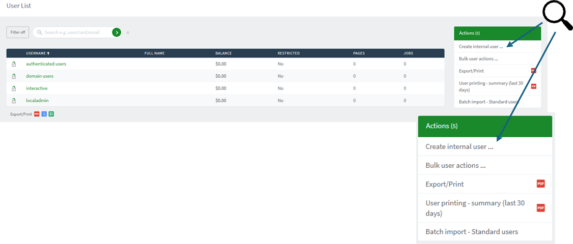 IBL | PaperCut – Create a new internal user