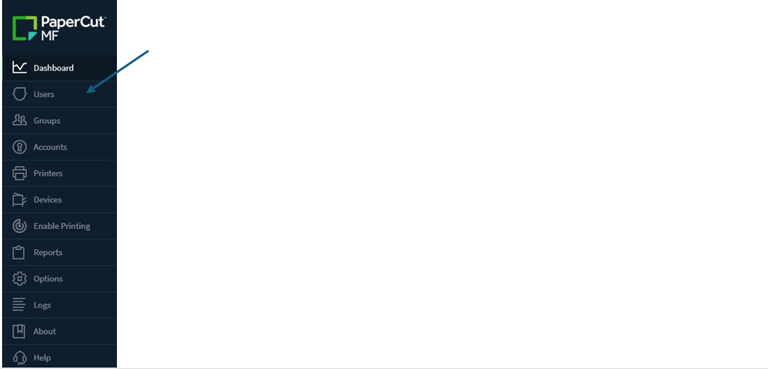 Step 3. Using the navigation toolbar on the left select Users from the list